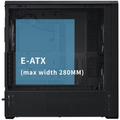 כאשר מחברי הספק פונים קדימה, המארז תומך בספק ATX באורך של עד 220 מ״מ, מתאים לרוב ההתקנות.