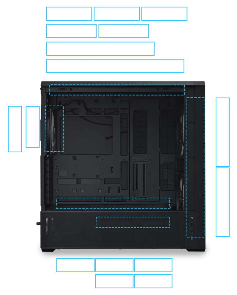 LANCOOL 217 INF מציע תאימות גבוהה במיוחד. מעבר למאווררי 170 מ״מ ו-140 מ״מ הכלולים, הוא תומך במאווררים נוספים ומאפשר התקנה של רדיאטור עד 360 מ״מ בעובי כולל של פחות מ-85 מ״מ.