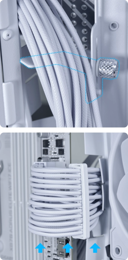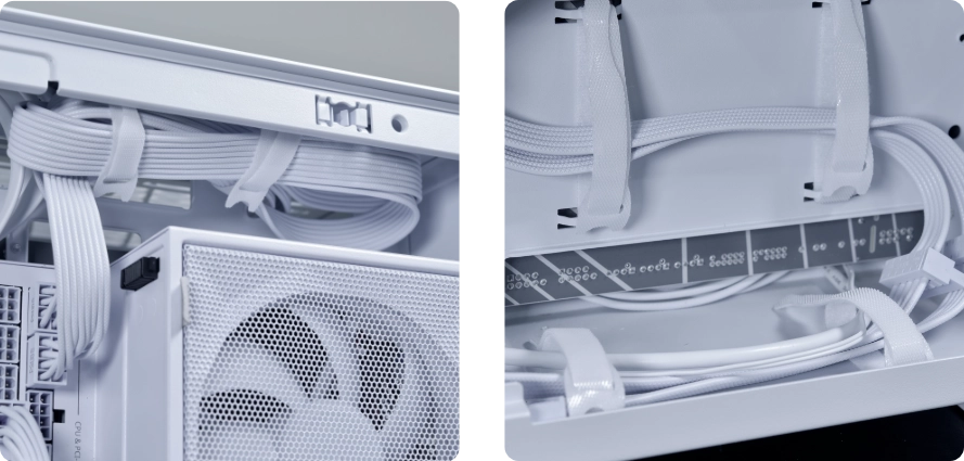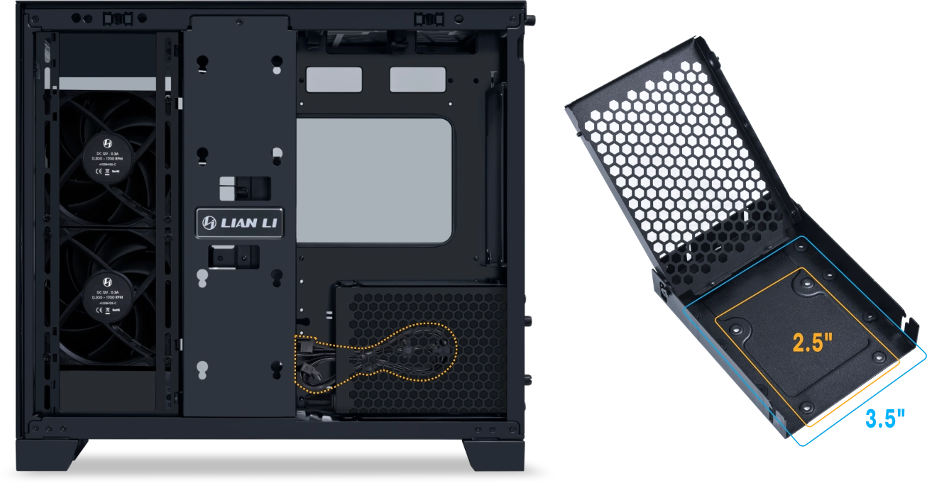כלובי אחסון דו-שימושיים תומכים בדיסקים 2.5″ ו-3.5″ או מספקים מקום ייעודי לניהול כבלים – לשמירה על בנייה נקייה ומסודרת.