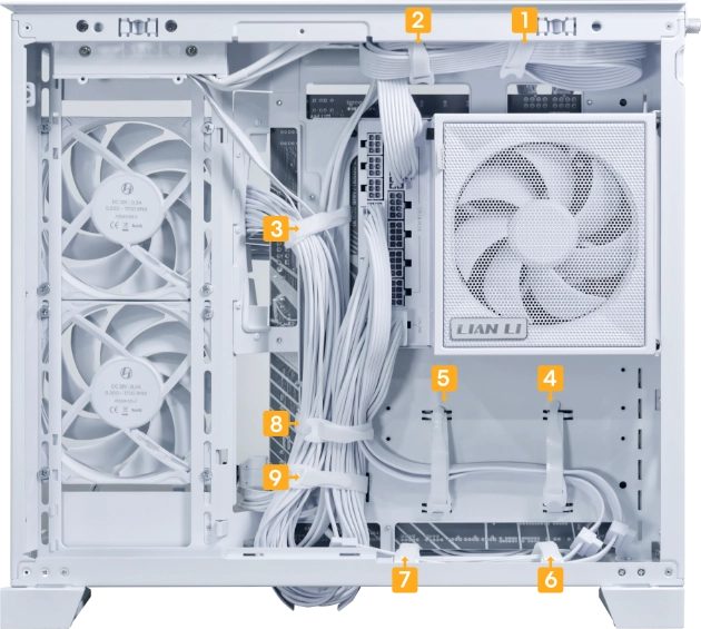 המארז כולל תושבת מובנית שמחזיקה את כבל החשמל 24-pin ATX בצורה יציבה ומדויקת. כך מופחת העומס על המחבר ונוצר מראה מסודר ונקי יותר.