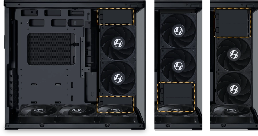 התקינו מאווררים או רדיאטור מחוץ למארז, ואז הכניסו את כל התושבת כיחידה אחת – לתהליך בנייה קל ומהיר יותר. העיצוב הנשלף כולל גם פילטר אבק לשמירה על מערכת נקייה ותחזוקה פשוטה.