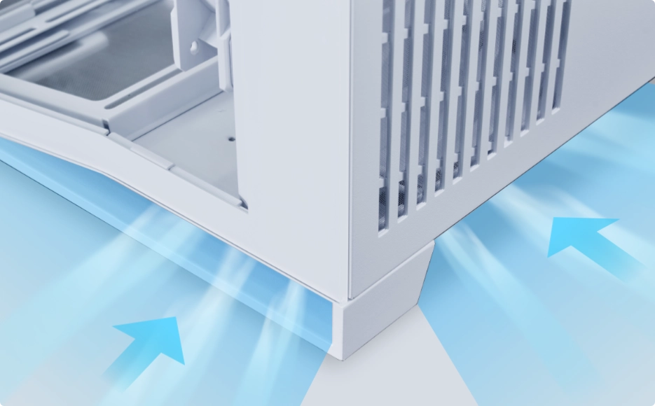 בסיס תחתון בזווית 10° מכוון אוויר קר ישירות לכרטיס המסך, לשיפור הקירור ולמראה נקי ומדויק יותר.