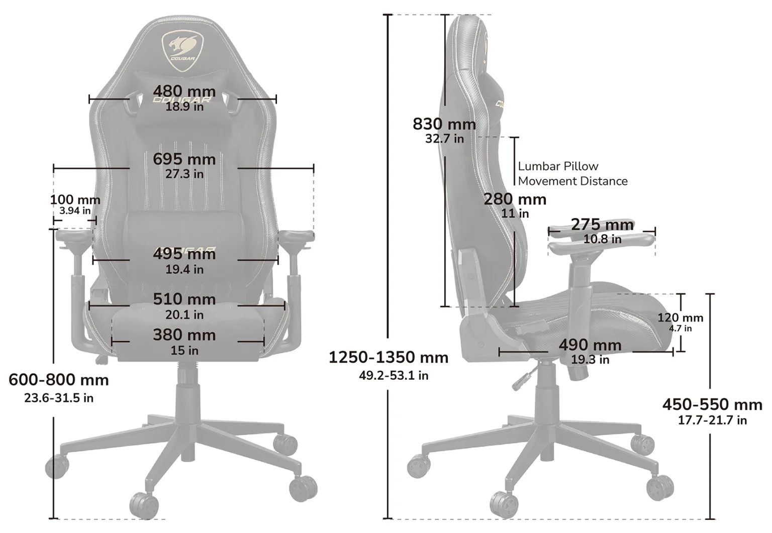 COUGAR ממשיכה לדחוף את הגבולות בשיפור עיצוב הכיסאות הארגונומיים. עיצוב מעוגל ועדין יותר בצדי המושב ובמשענת הגב מספק שטח תמיכה רחב יותר וכריות ריפוד עמידות וחזקות יותר.
