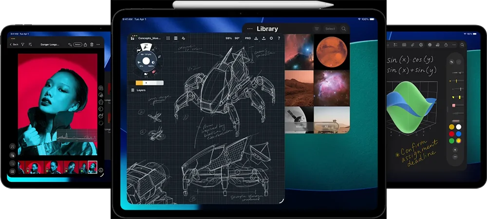 iPadOS 26 מציג עיצוב חדש ומרהיב עם Liquid Glass ושיפורים פורצי דרך שמעלים את הפרודוקטיביות של iPad Pro לרמה חדשה. מערכת חלונות מחודשת ואינטואיטיבית מעניקה לכם יותר עוצמה וגמישות מאי פעם. הריצו אפליקציות מקצועיות, שחקו במשחקים עתירי ביצועים והתמודדו עם פרויקטים יצירתיים בכל קנה מידה – הכל באמצעות חוויית שימוש אינטואיטיבית המבוססת מגע.