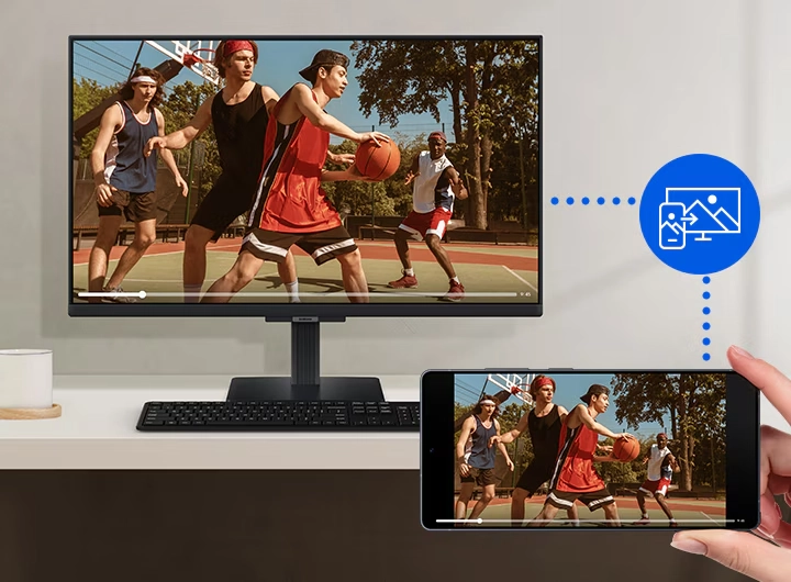 הזרימו בקלות את התוכן שלכם למסך הגדול. התחברו וצפו בתכנים מהנייד — סרטונים, תמונות ומסמכים — ישירות על גבי המסך החכם.3