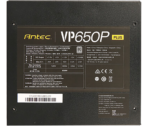 ספק כח אקטיבי Antec דגם VP650P PLUS בעל הספק 650W ונצילות 80Plus