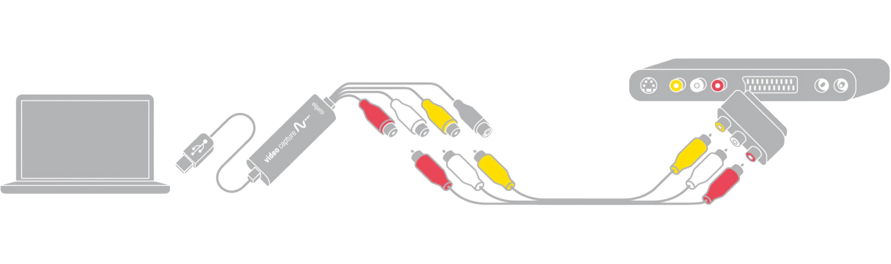 אולי קיבלתם DVD מאירוע משפחתי או מפגש חברים ואתם רוצים לשתף אותו באתר או ב־YouTube. או שאולי שמרתם סדרות וסרטים נהדרים ב־DVR ואתם רוצים לנגן אותם באייפד. Elgato Video Capture יכולה להתחבר וללכוד וידאו לכל Mac או PC מכל מכשיר שיש לו יציאת RCA (קומפוזיט) או S-Video. בנוסף, היא מגיעה עם מתאם SCART.