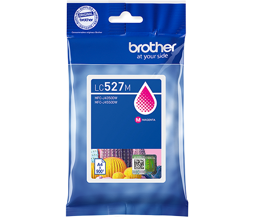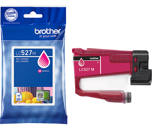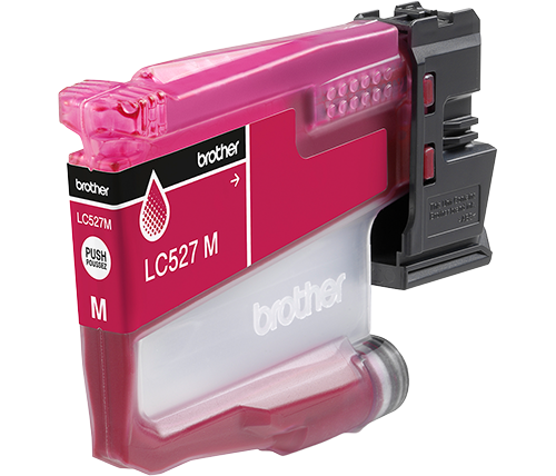 ראש דיו מקורי Brother LC527M בצבע אדום (מג'נטה), מדפיס עד 900 עמודים. מחסנית הדיו הפיגמנטית האיכותית מפותחת כדי להפיק צבעים חיוניים וטקסט חד. מתאים למדפסות Brother MFC-J4350DW ו-MFC-J4550DW.