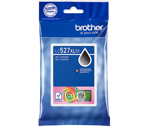 ראש דיו מקורי BROTHER דגם LC527XLBK בצבע שחור, מדפיס עד 3,000 עמודים. מחסנית הדיו הפיגמנטית האיכותית מפותחת כדי להפיק צבעים חיוניים וטקסט חד. מתאים למדפסות Brother MFC-J4350DW ו-MFC-J4550DW.