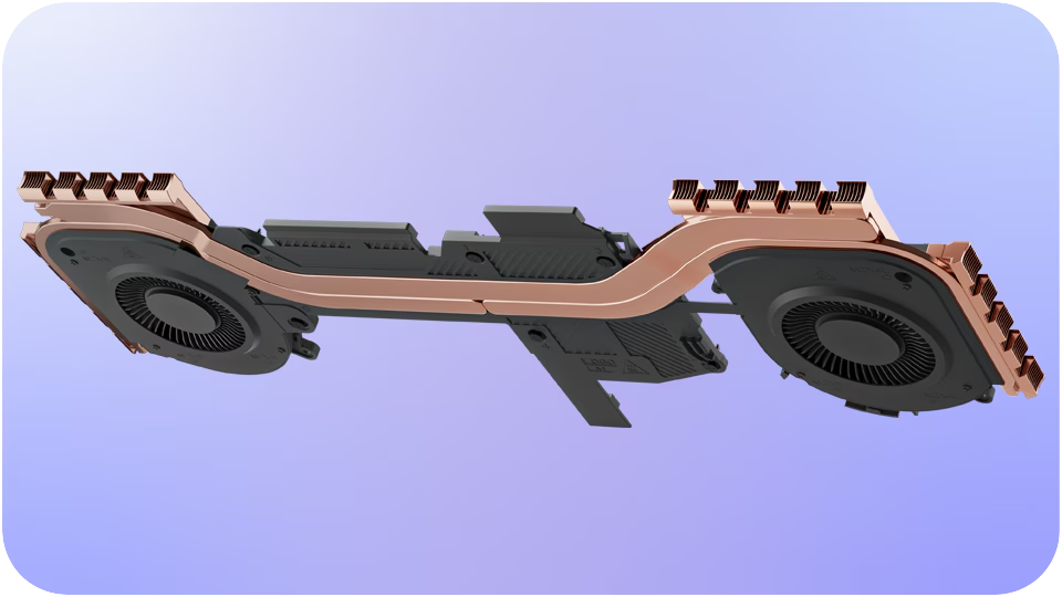 שלושה צינורות חום מנחושת מפזרים חום מה-CPU ומה-GPU ומבטיחים חוויית משחק חלקה.