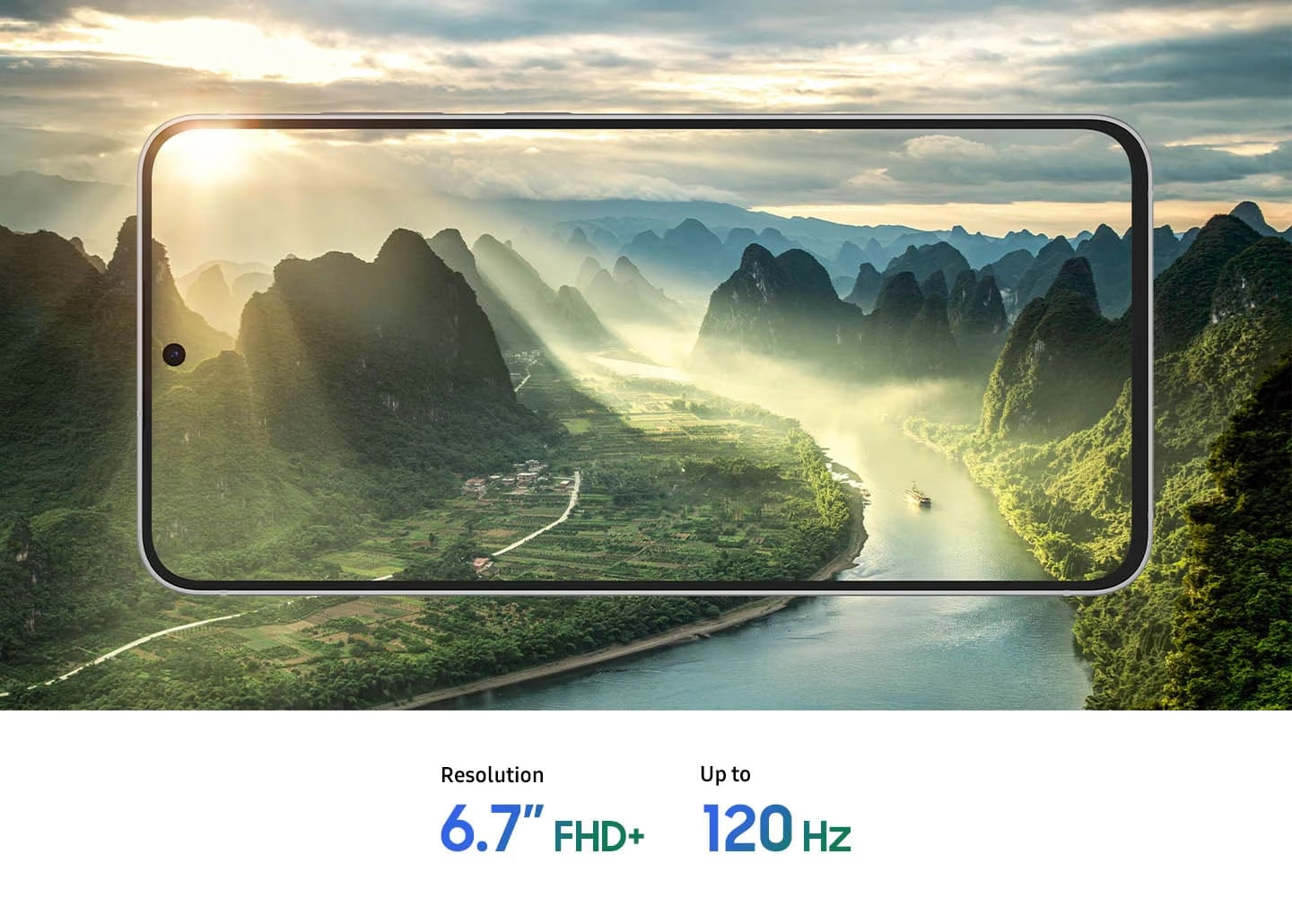 תצוגת ה-+FHD בגודל 6.7 אינץ' של Galaxy S25 FE מספקת חוויית צפייה סוחפת עם קצב ריענון של עד 120Hz. עם מסגרת ממוזערת ומסך בהיר יותר עם Vision Booster, אתם נהנים מתמונה חיה וברורה עם תוכן חד במיוחד.18