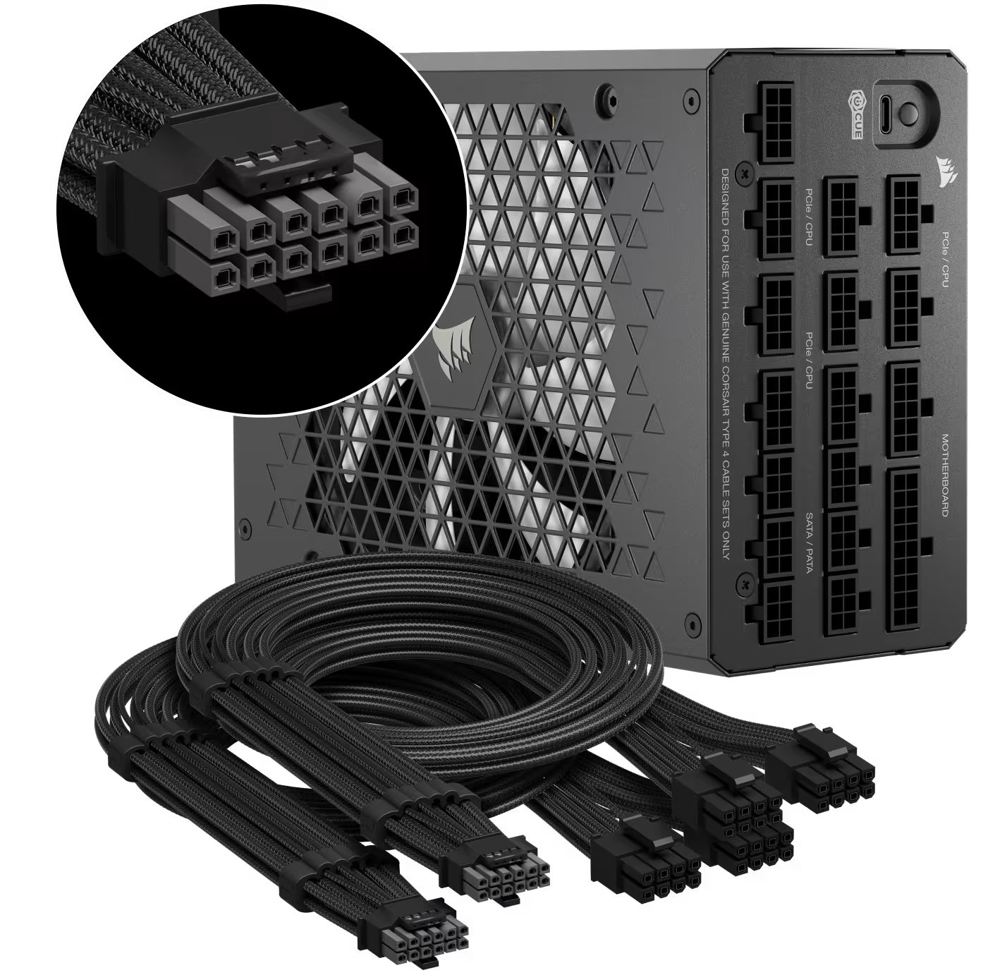 כל ספק כוח מסדרת HXi מוכן לכרטיסי מסך מתקדמים עם שני כבלי PCIe 5.1 מסוג 12V-2x6, הכוללים מחברים דו־צבעיים לאימות חזותי של חיבור בטוח ותקין.