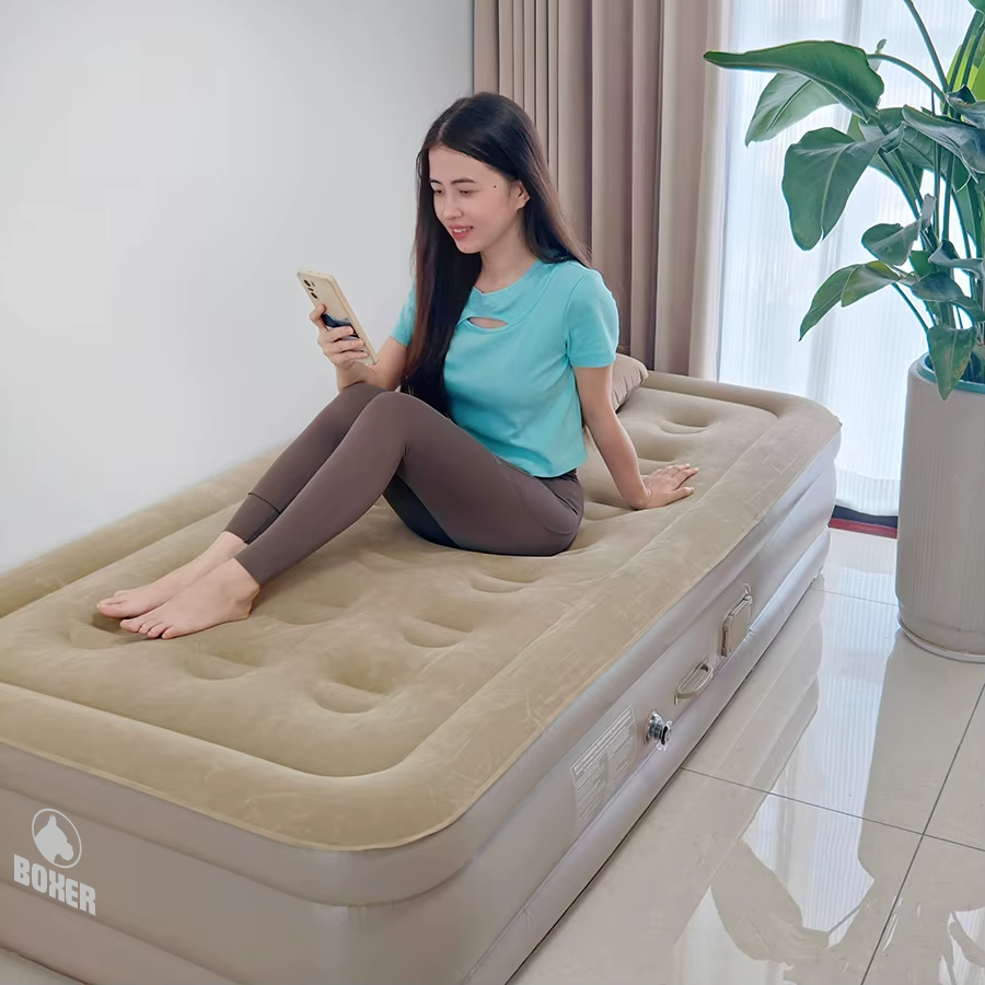 דופן המזרון מיוצרת בשיטה חדשנית הכוללת שכבה עליונה קטיפתית למגע נעים, ומתחתיה שתי שכבות PVC איכותיות המבטיחות אטימות מלאה, עמידות גבוהה ואריכות ימים. שילוב השכבות מספק קשיחות מצוינת ומונע קרעים או איבוד אוויר.