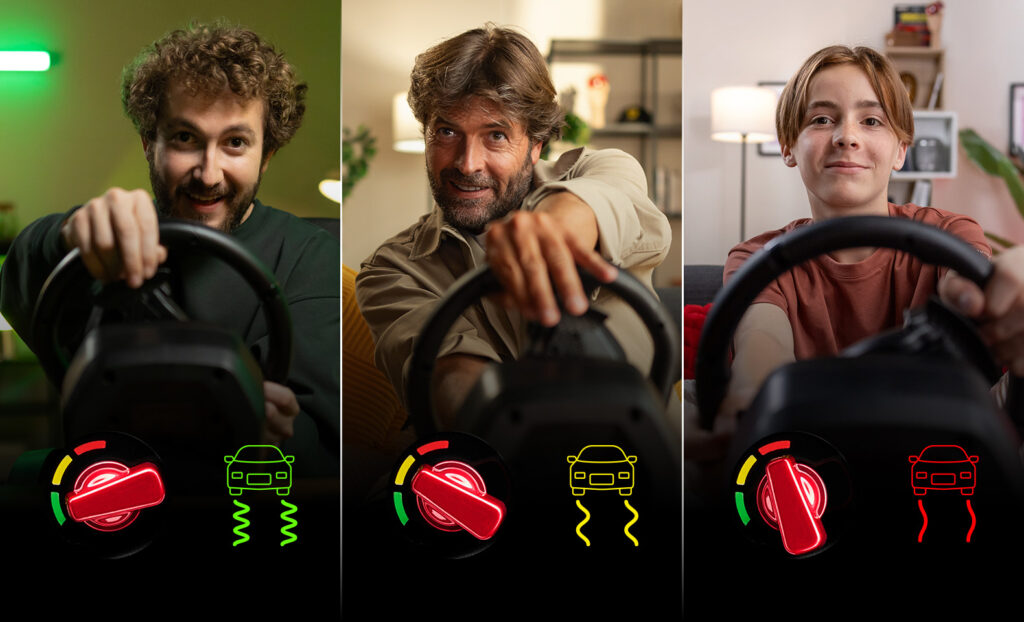 בורר בהשראת Manettino האייקוני של Ferrari מאפשר מעבר בין 3 פרופילי סיוע לנהיגה – מהמציאותי ביותר ועד לקל ביותר לשימוש. כך, T98 Ferrari 296 GTS מתאים לכל סוגי הגיימרים, ממתחילים ועד נהגים מנוסים. ניתן להחליף פרופיל בזמן אמת וליהנות מחוויות בלתי נשכחות עם משפחה וחברים.
