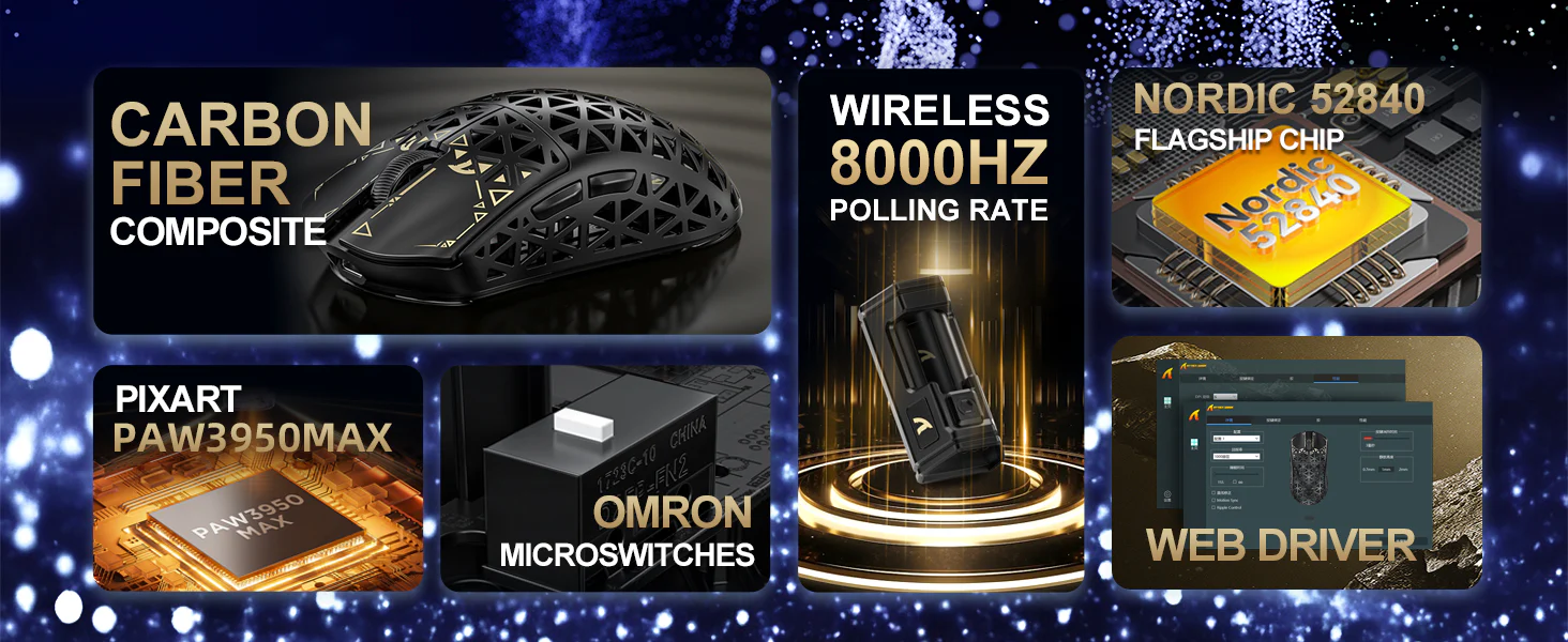 ה-R5 Ultra מצויד בחיישן המתקדם PAW3950MAX מבית PixArt, המציע רגישות עד 42,000 DPI, קצב Polling של 8000Hz, מהירות מעקב 750 IPS ותאוצה 50G לדיוק שאין כמותו. עם תגובה מהירה ומעקב מושלם, הוא אידיאלי ל-FPS מדויקים ולמהלכי MOBA מהירים. מקצוענים סומכים עליו – והוא מיועד לניצחון.