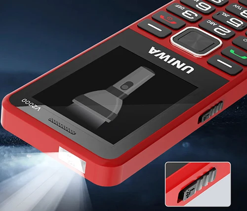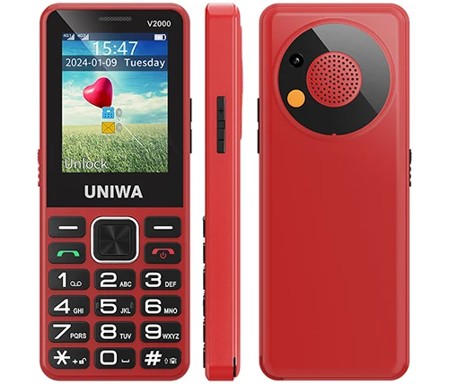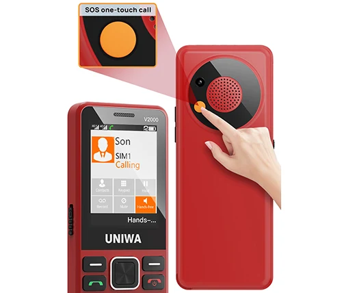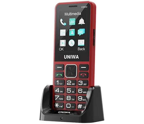 הטלפון הסלולרי UNIWA V2000 מתאים במיוחד למבוגרים. מגיע עם מקשים גדולים, ספרות ברורות ותצוגה גדולה וקריאה. כמו כן, מתאים לכבדי שמיעה (HAC) וכולל ספר טלפונים עד 1000 אנשי קשר ומנגנון רטט.