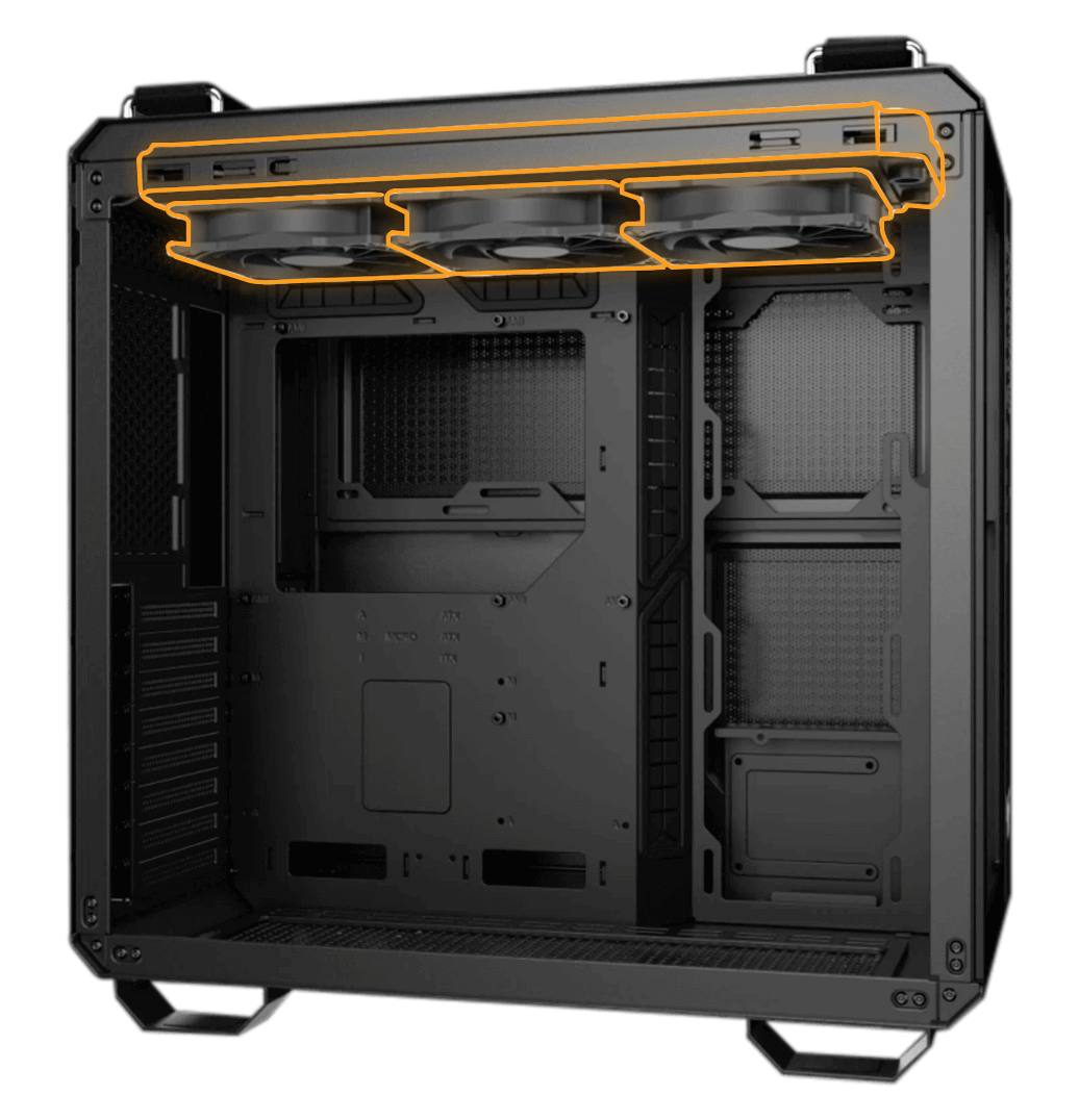 ה-TUF Gaming GT502 PLUS מציב את החומרה היקרה שלכם מקדימה, ומגבה את החלק האחורי עם שפע של אפשרויות קירור שמפחיתות טמפרטורות ומסייעות להשגת ביצועים אולטימטיביים עבורכם.