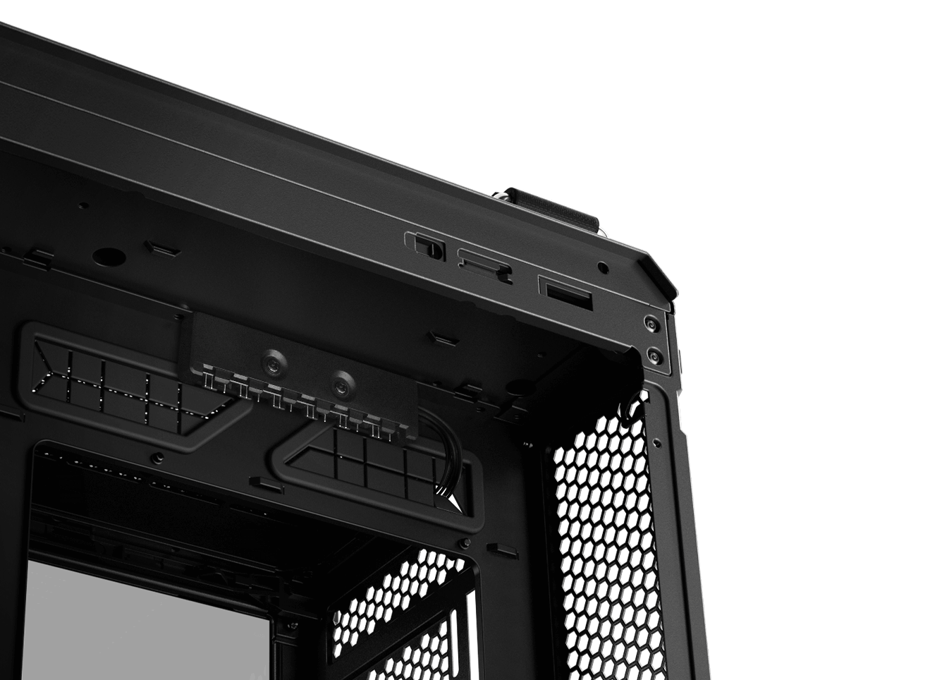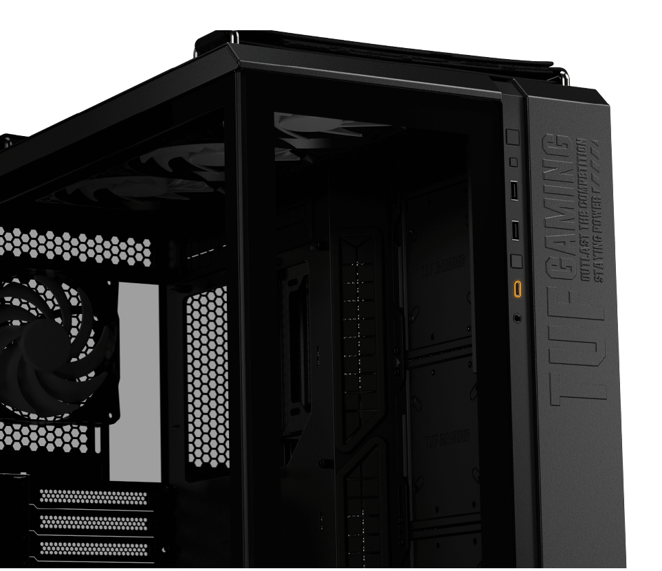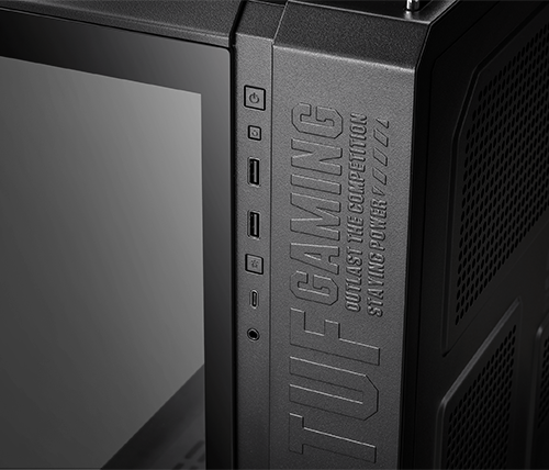 בנוסף לשתי יציאות USB-A, הפאנל הקדמי של ה-TUF Gaming GT502 PLUS כולל יציאת USB Type-C עם מהירות העברה של עד 10Gbps.