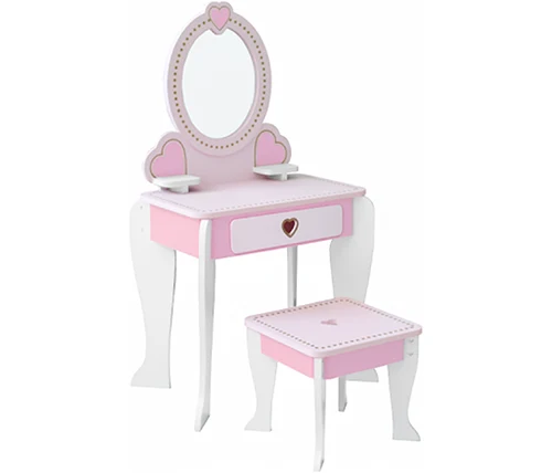שידת איפור לילדות עם שרפרף ומראה בצבע ורוד ולבן דגם גלי – משלוח חינם
