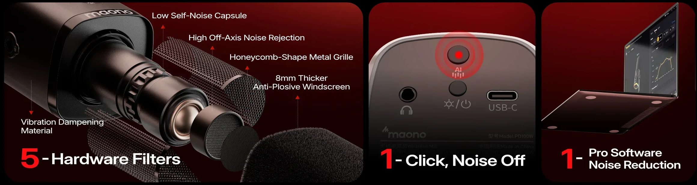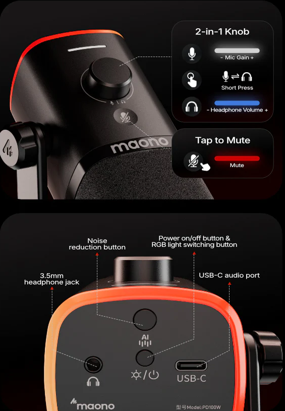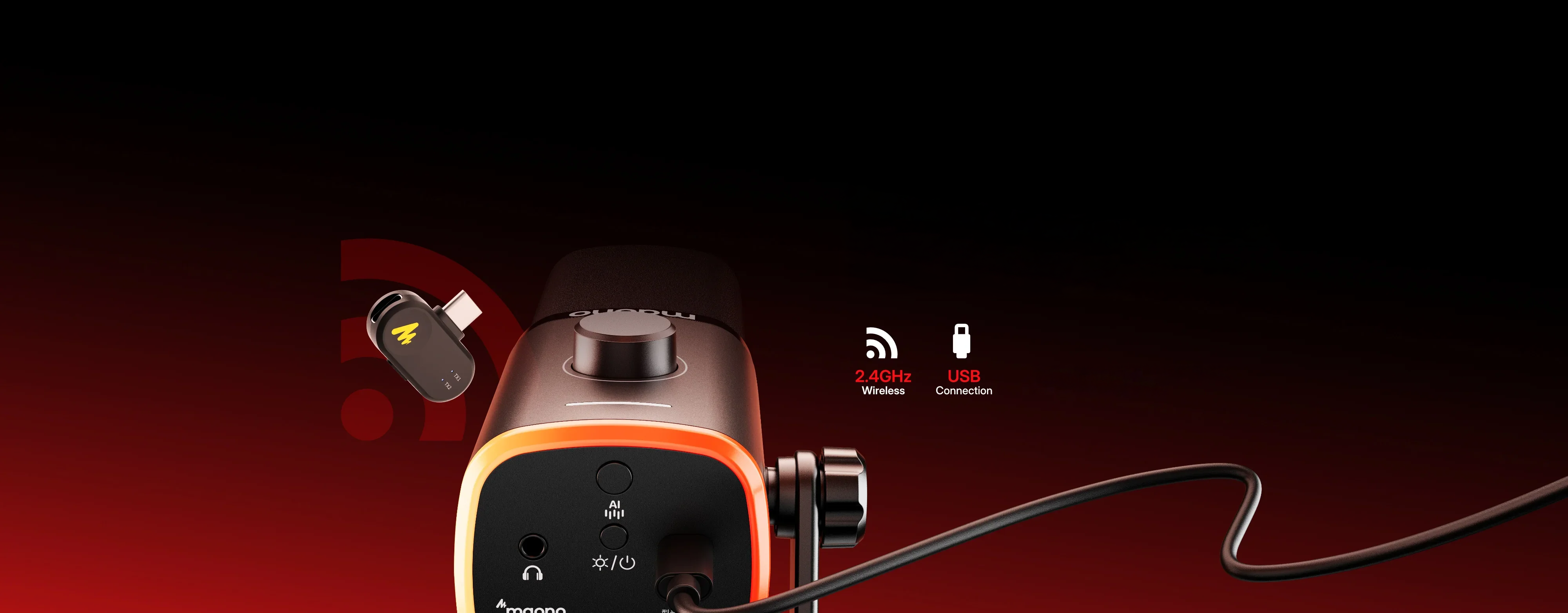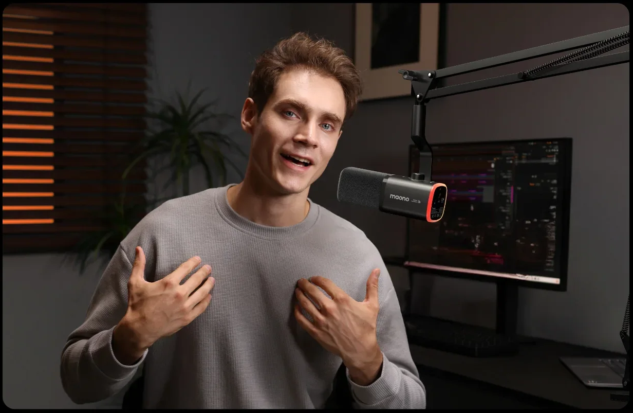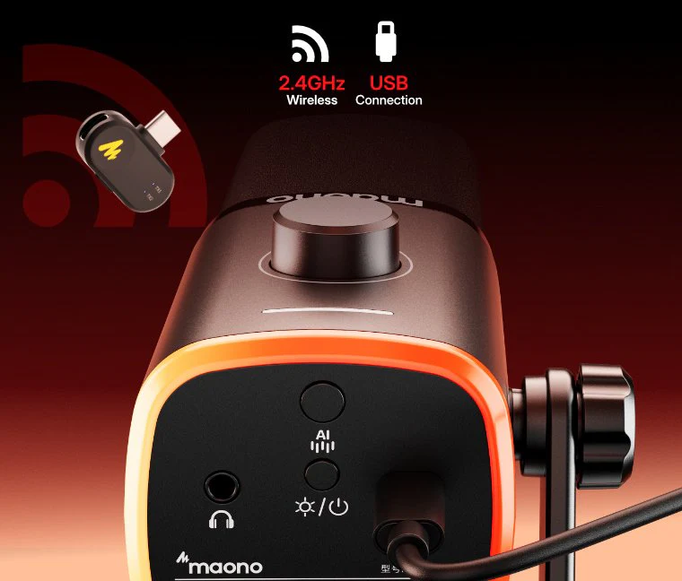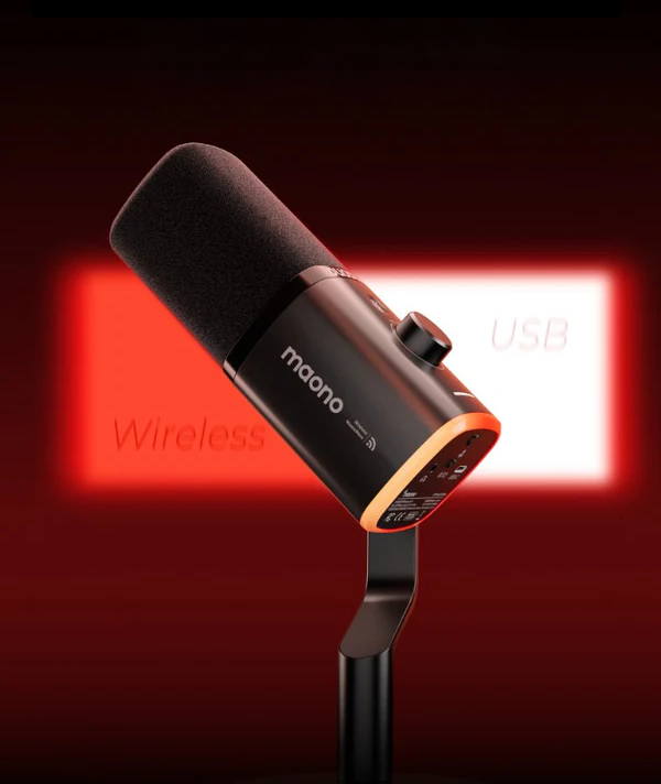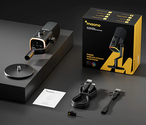 מיקרופון דינמי אלחוטי לפודקאסט Maono PD100W Wireless & USB Dynamic Microphone