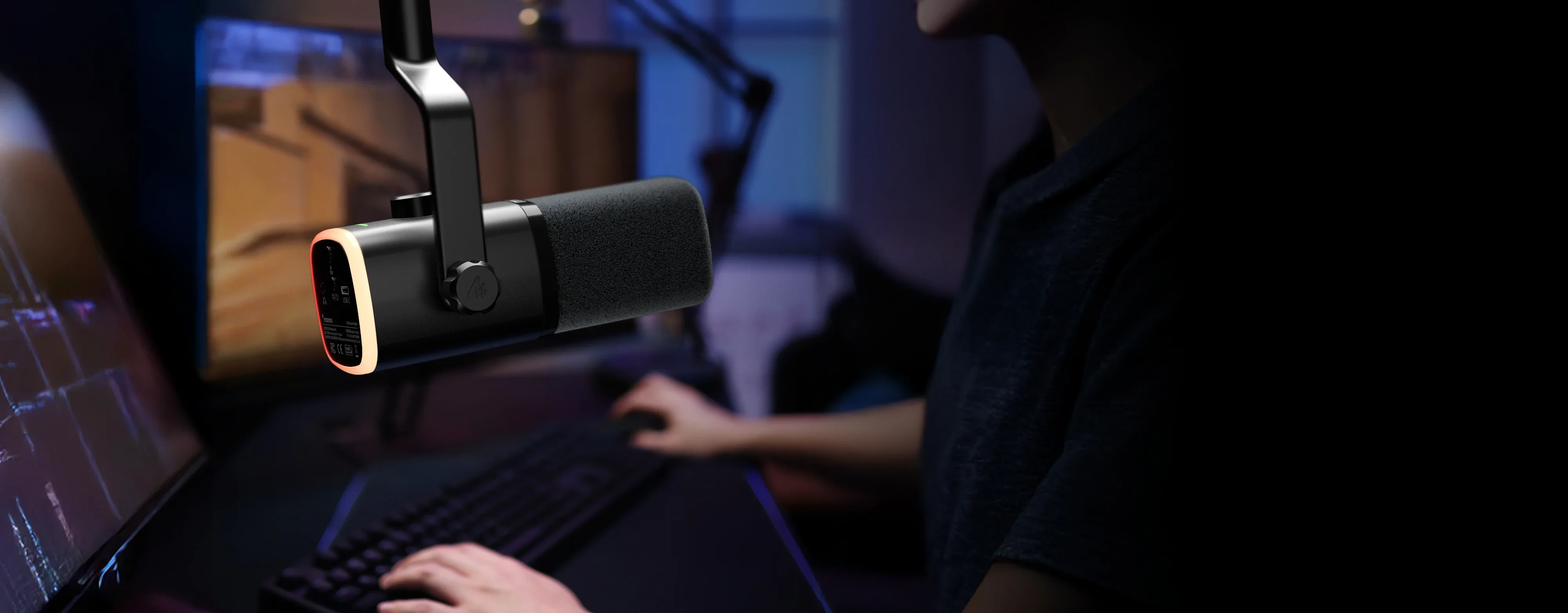 הגיע הזמן לעבור לאלחוטי. המיקרופון שלנו מספק סאונד ברמה אולפנית, מנקה את עמדת העבודה מהכבלים ומהמתקנים המורכבים – ומתוכנן לשלמות מינימליסטית.