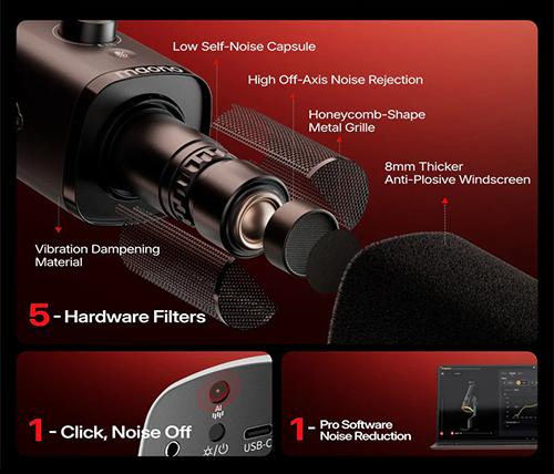 תוכנן להתמקד בקול שלכם, טכנולוגיית דחיית רעשים מזוויות מפחיתה משמעותית הדהוד בחדר ורעשי רקע.