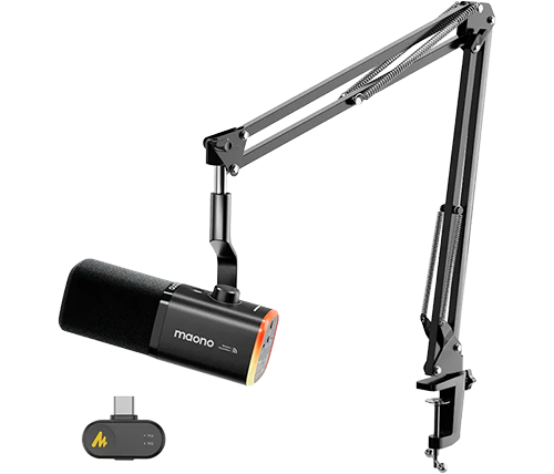 מיקרופון דינמי אלחוטי לפודקאסט עם זרוע בום Maono PD100W Wireless & USB Dynamic Microphone with boom arm BA20
