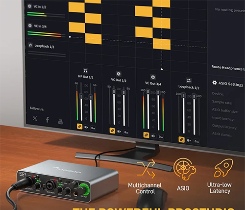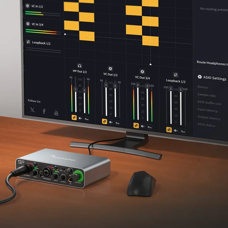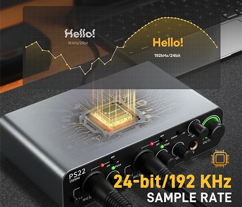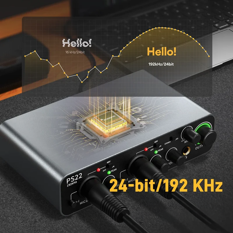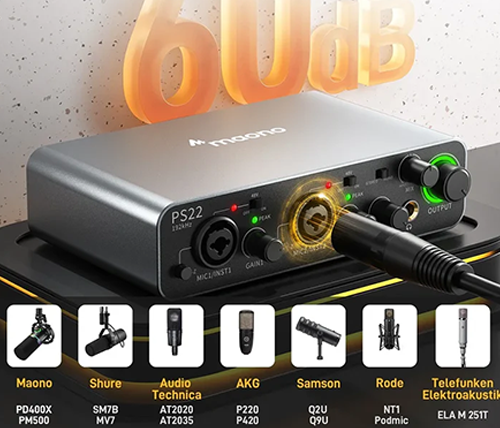 כרטיס הקול Maono ProStudio PS22 נועד לגשר בין אולפן הקלטות ביתי לעמדת שידור מקצועית. עם איכות המרה של 24bit/192kHz, הוא מספק סאונד מדויק, נקי ועשיר – אידיאלי להקלטת שירה, נגינה בגיטרה או שידורים חיים ב-Twitch ו-YouTube.