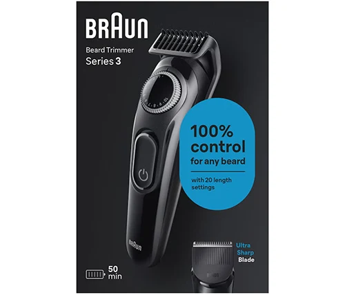קוצץ הזקן BT3400 מסדרת Series 3 מצויד בסוללת Ni-MH חזקה, המספקת עד 50 דקות עבודה מטעינה אחת.