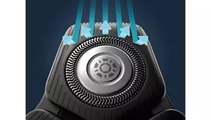 ראשי גילוח גמישים במלואם שמסתובבים ב-360° ומסוגלים לעקוב אחר קווי הפנים והראש. חוו מגע אופטימלי עם העור לגילוח יסודי ונוח.