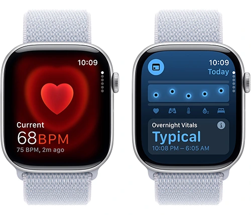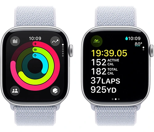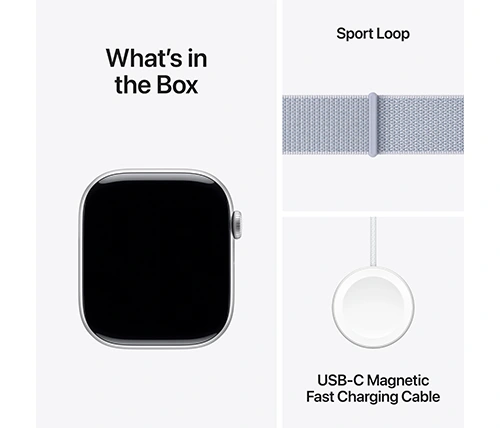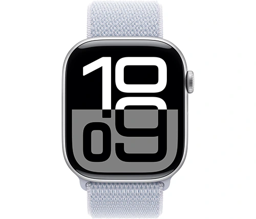 מציאון - שעון חכם אפל ווטש Apple Watch 10 עם GPS גוף אלומיניום 46mm בצבע כסוף ורצועת ספורט Loop בגוון Blue Cloud - מוחדש