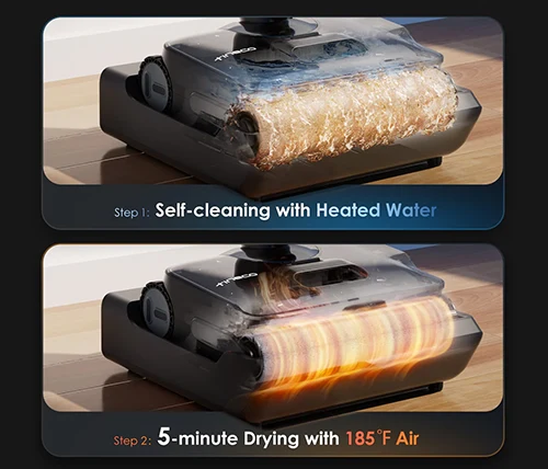 שימוש במים נקיים המחוממים על ידי אוויר חם בטמפרטורה של ℃85 כדי להמיס ביעילות כתמים מהצינור ועד לגליל המברשת, ומספק תוצאה מעולה של ניקוי עצמי.