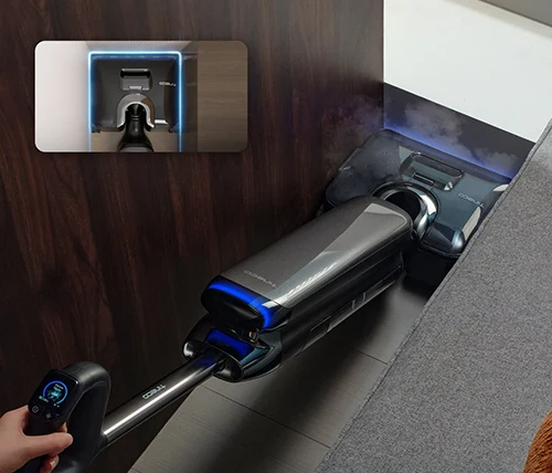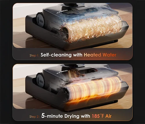 לאחר לחיצה על כפתור העצירה, המכשיר מבצע תנועה לאחור באופן אוטומטי כדי להסיר סימני מים, ומשלים את שלב הניקוי האחרון של הרצפה. כך תוכלו ליהנות מרצפה נקייה ויבשה לחלוטין בכל שימוש.