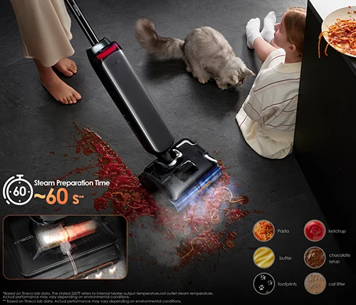 טכנולוגיית הבוילר החדשנית של Tineco מחממת את הקיטור עד לטמפרטורה של 160°C, ומבטיחה שטמפרטורת היציאה לא תרד מ-99°C**. טכנולוגיה זו ממיסה ביעילות שומנים וכתמים עקשים במיוחד.