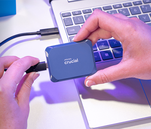 כונן SSD חיצוני נייד Crucial X10 – נפח 4TB – ממשק USB-C 20Gbps – צבע כחול