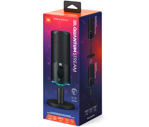 מיקרופון גיימינג JBL Quantum Stream – תאורת RGB – חיבור USB – בורר ווליום – יציאת אוזניות – צבע שחור
