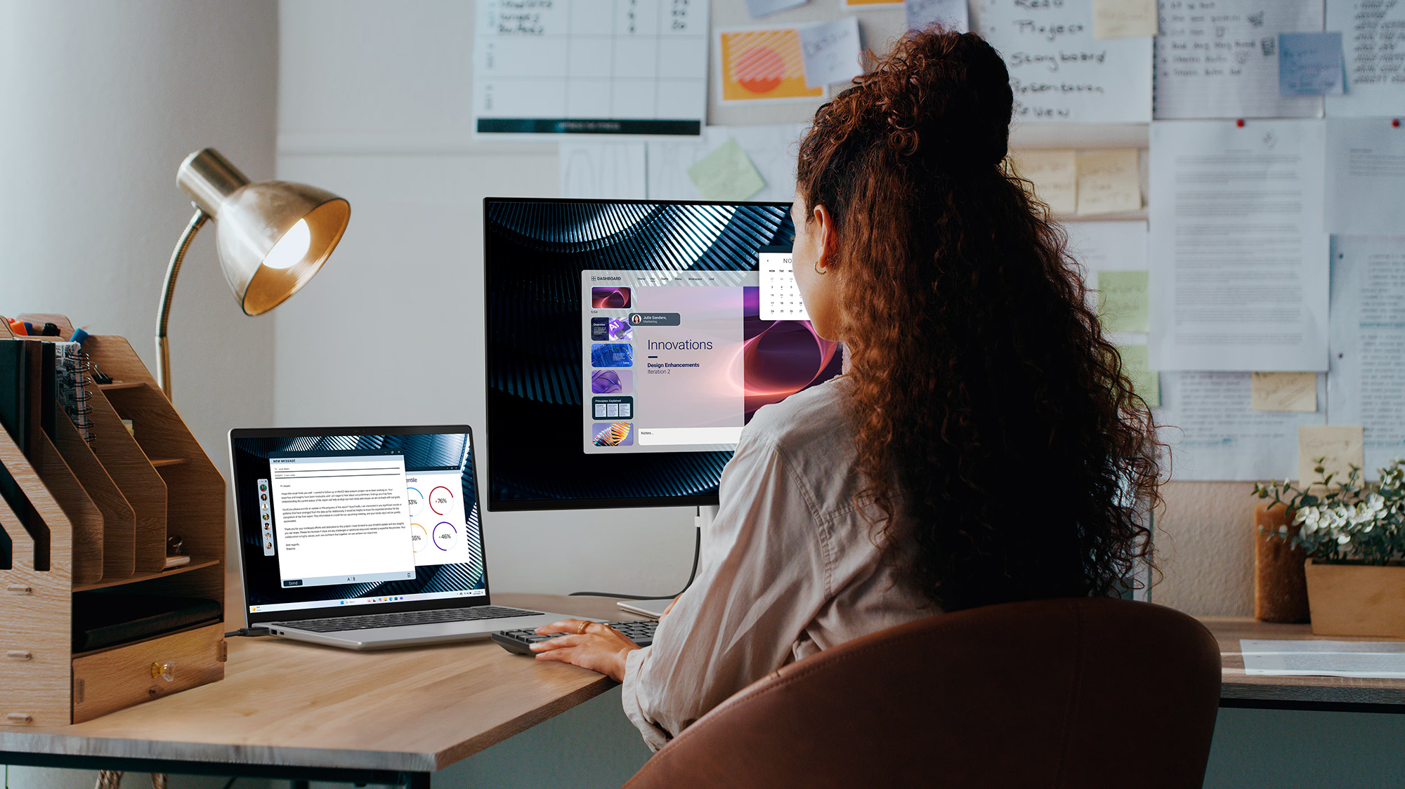 עברו בצורה חלקה בין עריכת מצגות, שיחות וידאו ומענה לאימיילים – הכול בעוצמה של מעבדי Intel® Core™.