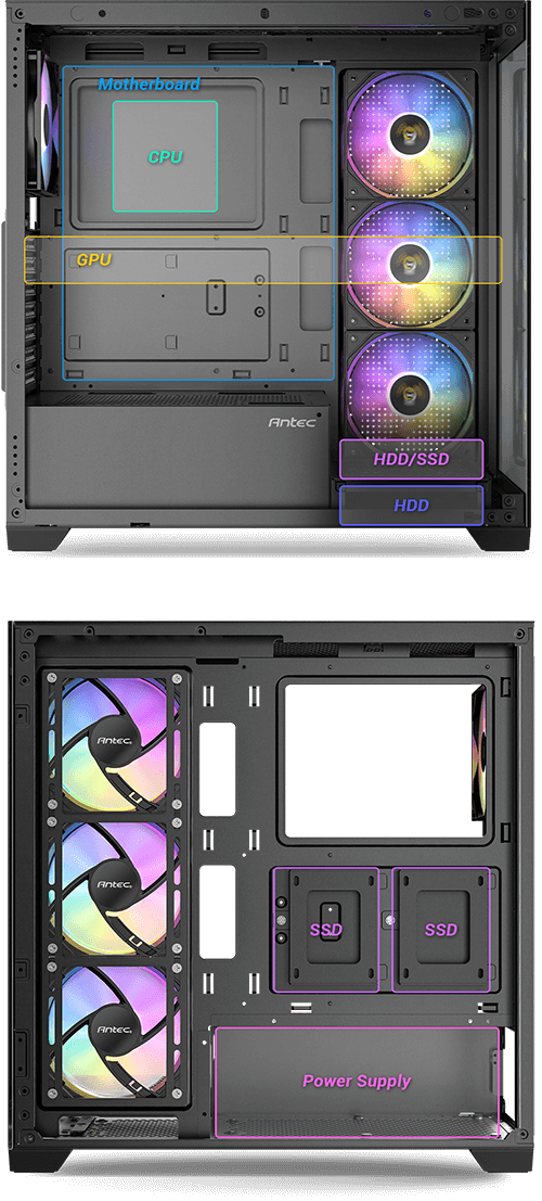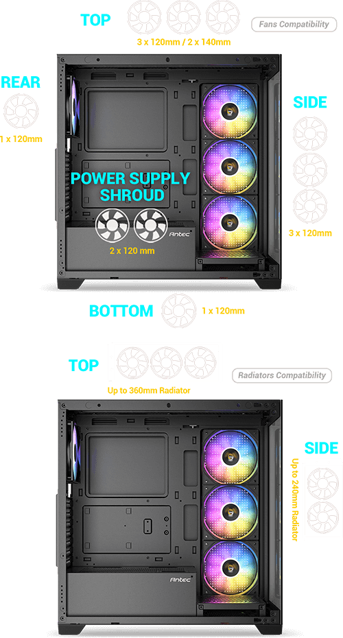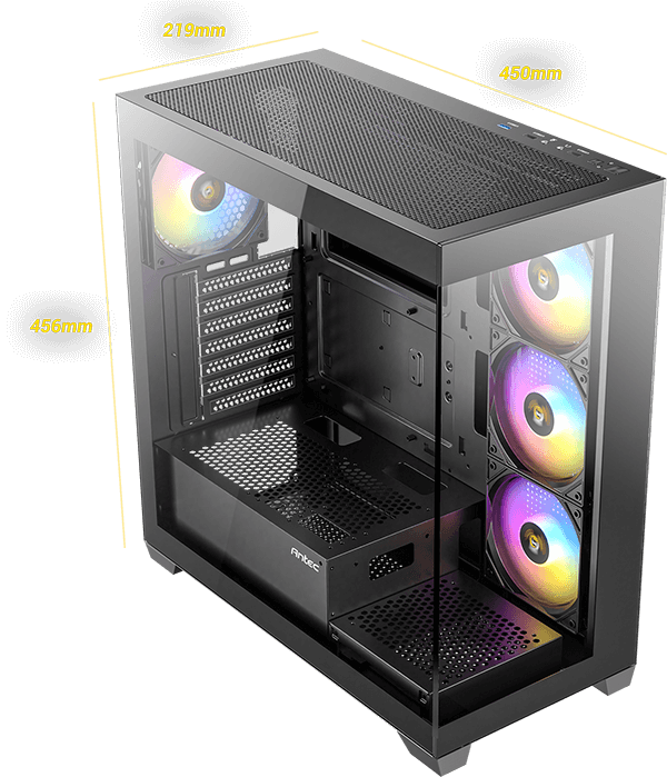 Antec CX300 ARGB – מארז Mid Tower בעיצוב פנורמי מרהיב עם תצוגת זכוכית מחוסמת, כולל 4 מאווררי ARGB מותקנים מראש, זרימת אוויר אנכית חכמה ותמיכה בקירור נוזלי. מציע מרחב עבודה נוח להרכבה, ניהול כבלים נקי ותאימות מלאה לחומרה מתקדמת – לביצועים מרשימים ולמראה שלא מתפשר.
