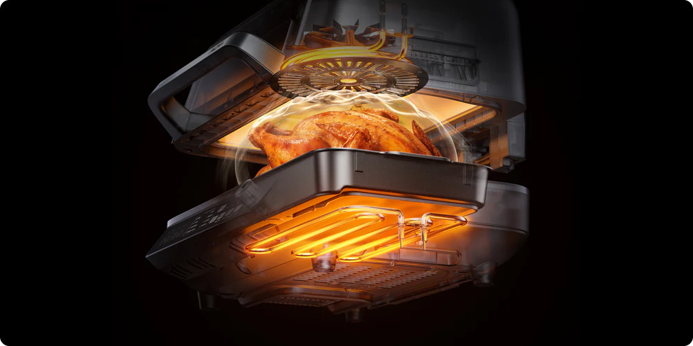 אלמנטים כפולים יוצרים סירקולציה של אוויר חם ב-360° לצלייה אחידה — ללא צורך בהפיכה. מחמם עד ℃260 ליצירת פני שטח פריכים וטעמים עשירים דרך תגובת מיילרד.