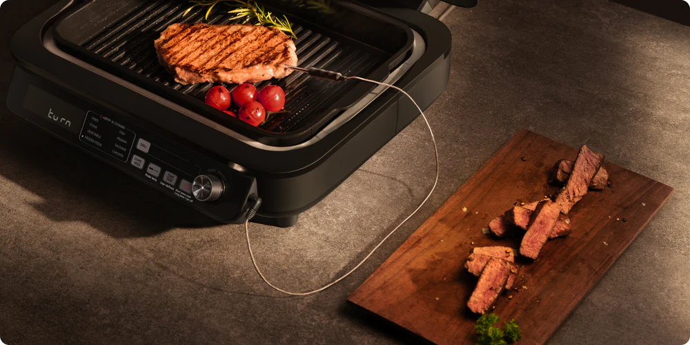 פשוט בחרו את מידת העשייה הרצויה — חיישן הטמפרטורה המובנה של IG20 ST מנטר את חום הליבה ומכבה אוטומטית ברגע שהטמפרטורה שהוגדרה הושגה — כך שכל מנה מוכנה בדיוק בזמן.
