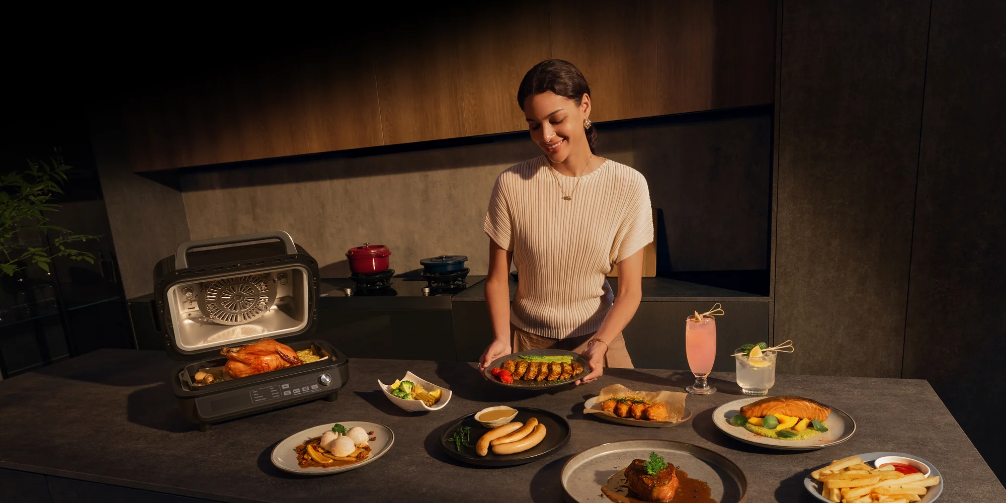 הרבה יותר מגריל שמיועד לשימוש בחללים פנימיים, מכשיר משולב זה מאפשר ליישם מגוון שיטות בישול - החל מצלייה, צריבה על פלאנצ'ה ועד לטיגון באוויר חם. הוא מביא רב-תכליתיות ונוחות למשטח העבודה שלכם.