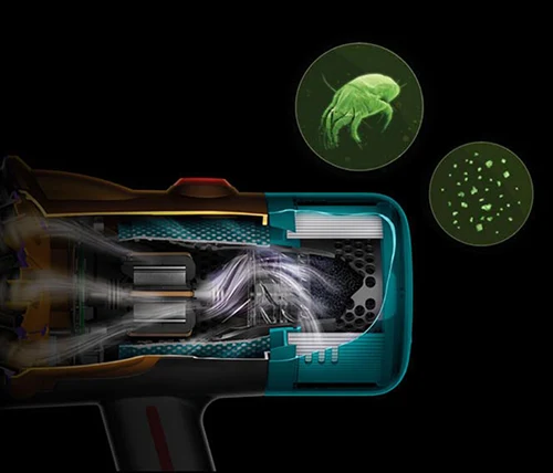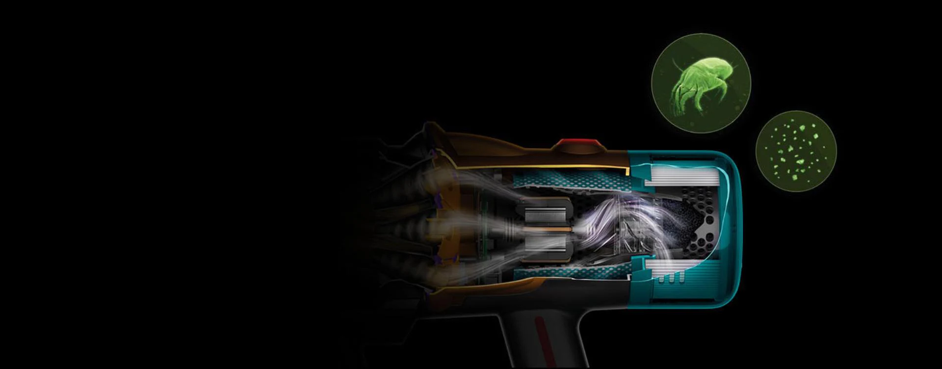 מערכת סינון מלאה ואטומה של המכשיר לוכדת אבק, חלקיקים ואלרגנים עד לגודל של 0.3 מיקרון.