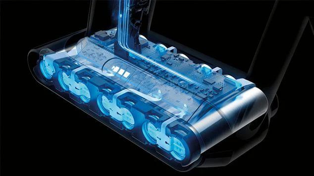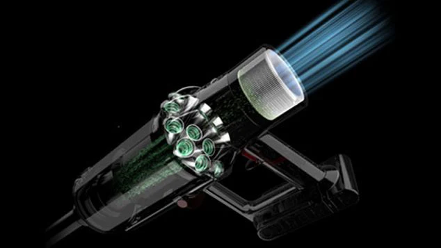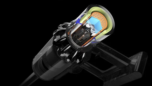 המנוע, המיכל והציקלון מיושרים, כך שהאוויר נשאב לתוך הציקלונים בקו ישר – מה שיוצר עוצמת שאיבה גבוהה ב-20% בהשוואה לשואב ה-Dyson V8™.