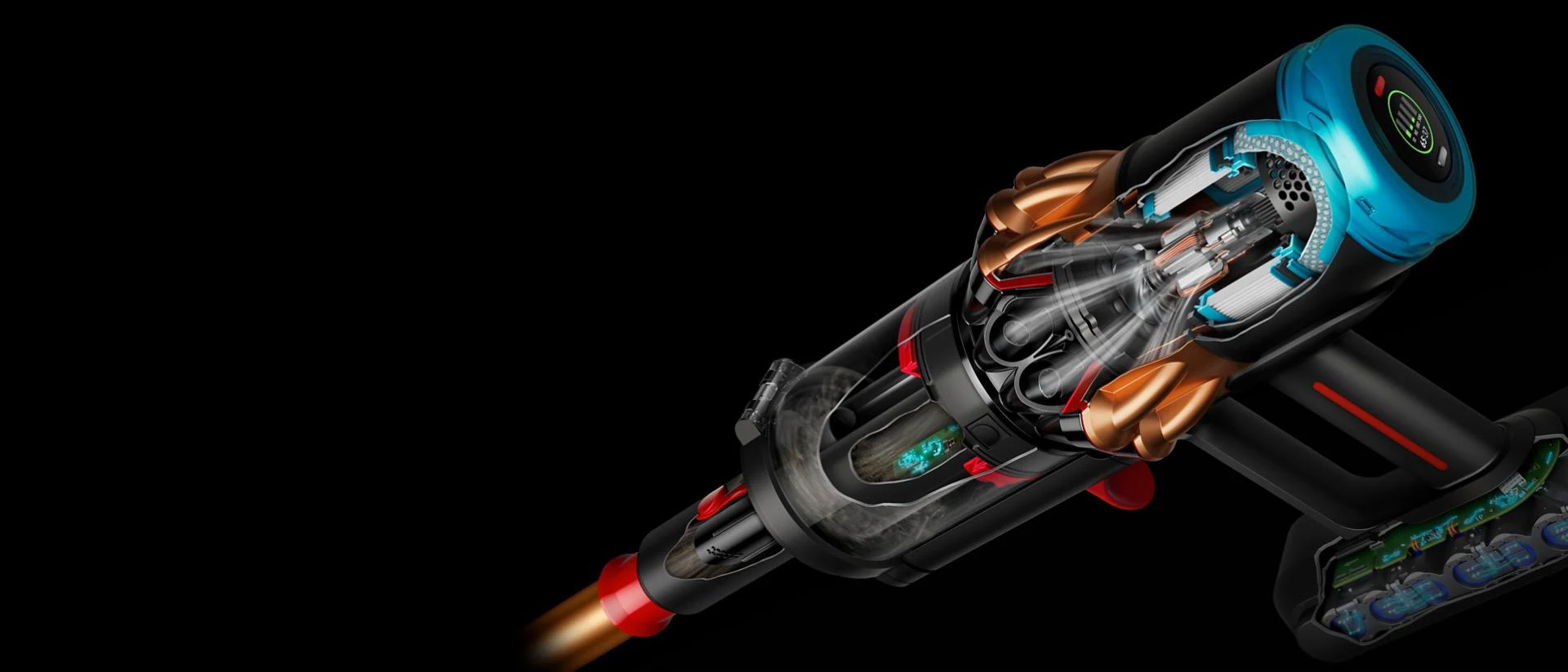 מנוע ה-Hyperdymium™ 900w החדש ביותר שלנו הוא העוצמתי ביותר של Dyson – ומספק עוצמת שאיבה של עד 315AW.³