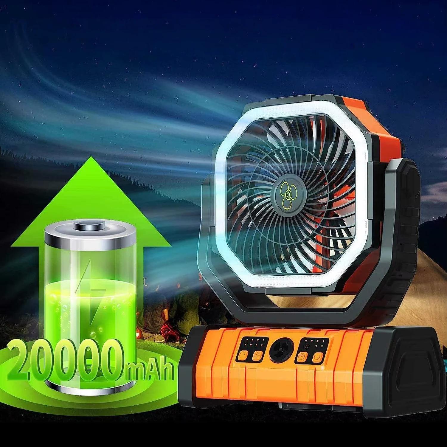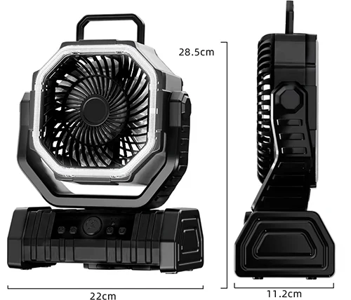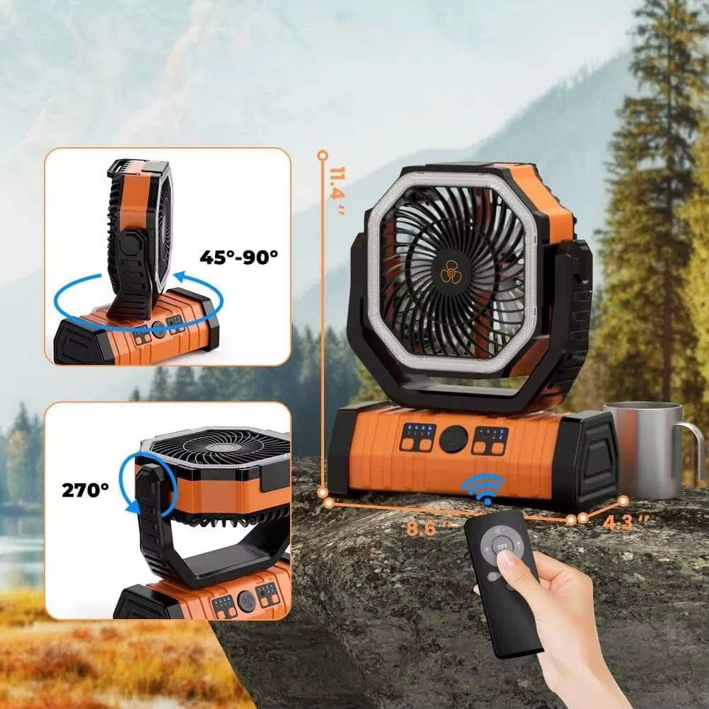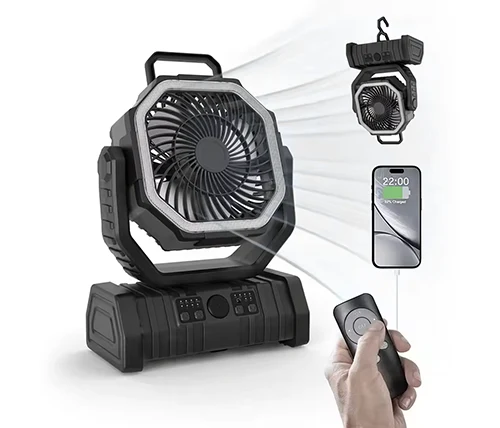 מאוורר נטען לקמפינג עם סוללת 20000mAh, תאורת LED, שלט רחוק ופונקציית מטען נייד Boxer F6