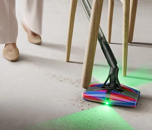 מנקה מסביב לרגלי כיסאות ושולחנות ונכנס למרווחים בעייתיים (צרים) בסיבוב פשוט של פרק כף היד.