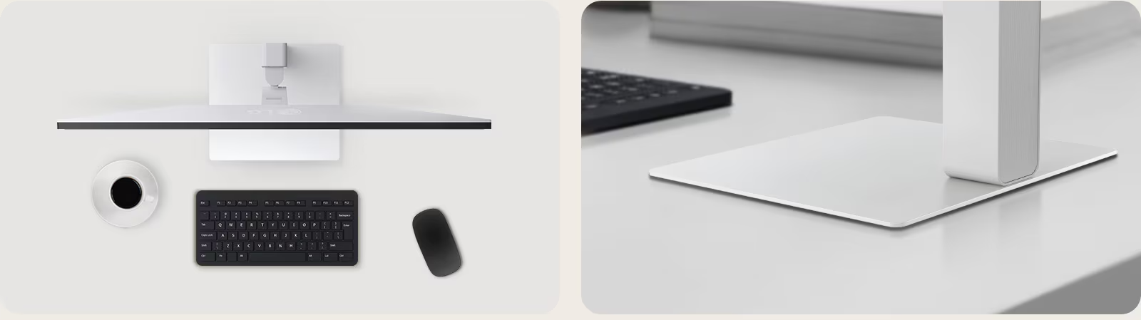 מעמד אלגנטי בצורת L תוכנן לנוחות ארגונומית עם אפשרות הטייה, והוא תואם גם לתלייה על קיר בתקן VESA 100×100 – להתקנה גמישה יותר וניצול יעיל של סביבת העבודה שלכם.
