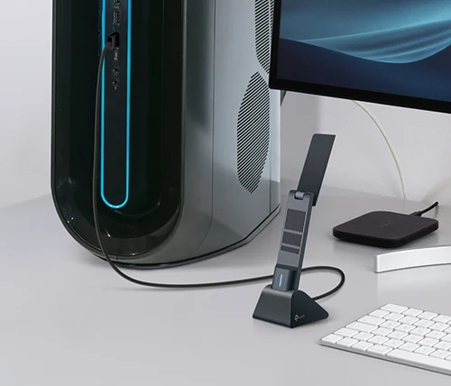 כבל USB 3.0 באורך 1.2 מטר מאפשר מיקום נוח של Archer TXE70UH בעמדת העבודה, והמתאם ניתן לחיבור והסרה בקלות מהמחשב לפי הצורך.