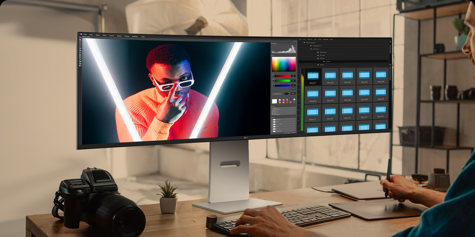 מעריכת צבע ועד דיוק בפריסה — אתם יוצרים בבהירות מקסימלית על פני 49 אינץ׳ של איכות DQHD מרהיבה.