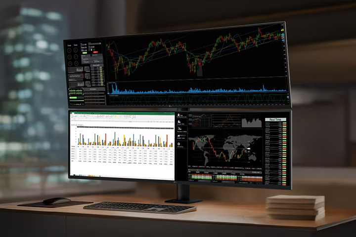 כאשר מרכיבים שניים מאותו מסך אתם מקבלים שטח תצוגה שווה ערך לארבעה מסכי 27 אינץ׳ — לצפייה בכמה מערכי נתונים במקביל, תוך צמצום עומס ובלגן על שולחן העבודה.